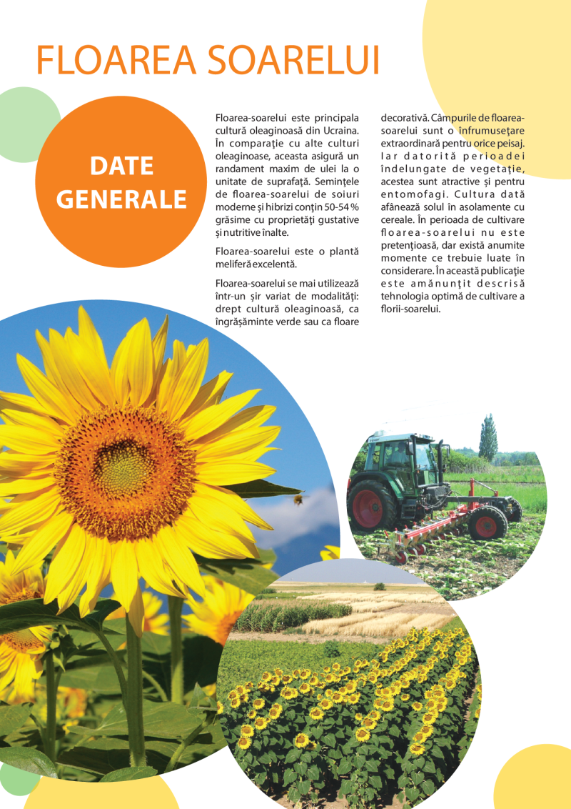 Această publicație descrie aspectele principale de cultivare a florii-soarelui în sistem ecologic, inclusiv caracteristicile generale, alegerea soiurilor, cerinţele faţă de soluri și climă, asigurarea cu substanţe nutritive, semănatul și controlul buruienilor și dăunătorilor, cele mai răspândite boli și recoltarea.